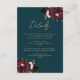 Elegant Dark Teal Burgundy Floral Wedding Enclosure Card