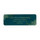 These beautiful wedding return address labels feature a simple yet elegant design with a gold text on a marbled dark teal colored background and lacy golden faux foil curls and swirls in the corners. Perfect way to make all of your wedding mailings more beautiful and fancier.