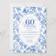Elegant Deep Blue Toile Roses 60th Birthday Downlo Invitation