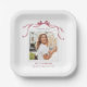 Elegant Deep Blush Ribbon Bow Graduation Photo Paper Plate