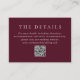 Elegant Deep Burgundy QR Code Classic Wedding Enclosure Card