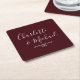 Elegant Deep Burgundy Script Minimalist Wedding Square Paper Coaster