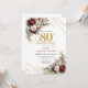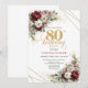 Elegant Deep Red Floral 80th Birthday Invitation