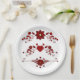 Serve your party treats on these elegant deep red floral paper plates featuring romantic heart flourishes and intricate botanical scrolls. Each plate showcases a sophisticated burgundy design that is perfect for wedding receptions, bridal showers, anniversary dinners, or valentines day celebrations. The rich crimson vine ornaments and victorian inspired patterns add a touch of gothic elegance to your table setting while providing the convenience of disposable dinnerware. These decorative party plates are a wonderful choice for hosts who want to combine a high end vintage aesthetic with easy cleanup for any special occasion.