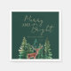 Rustic green trees and deer "Merry and bright" personalised napkins.
