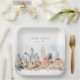 Elegant Denver Colorado Skyline Watercolor Wedding Paper Plate
