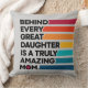 Elegant Mothers day Throw Pillows featuring a cute saying that reads "Behind Every Great Daughter Is A Truly Amazing Mum."