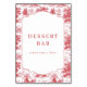 This is a vintage style image featuring an elegant dessert bar invitation. The background showcases intricate red botanical illustrations, creating a charming and sophisticated atmosphere. At the center, a white oval frame with decorative borders highlights the text "DESSERT BAR" in bold, inviting guests to indulge in sweet treats. Below it, the phrase "PLEASE TAKE A TREAT!" adds a warm and friendly touch. Perfect for weddings or formal gatherings, this design evokes a sense of classic charm and hospitality.