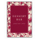 This is a vintage style image featuring an elegant dessert bar invitation. The background showcases intricate red floral patterns on a cream backdrop, creating a sophisticated and inviting atmosphere. At the center, a deep maroon rectangle with white text announces "DESSERT BAR" in bold letters, followed by the charming phrase "PLEASE TAKE A TREAT!" It exudes warmth and hospitality, perfect for adding a touch of class to any event or gathering.