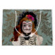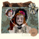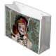 This eye-catching gift bag features traditional 'La Catrina' Day of the Dead face makeup digitally modelled on the endearing face of an antique Victorian doll from my personal collection. A gold-on-silk damask print provides an elegant background. A matching greeting card is available, as well as invitations for your family-friendly gatherings to welcome the souls of the departed. Use this bag to hold a hostess gift when attending a Día de Muertos fiesta, or to bring homemade sweet treats along for the kids. Sport it for any occasion whatsoever!