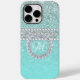 Elegant Diamond Personalised Monogram on Blue Teal Case-Mate iPhone Case