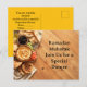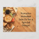 Elegant dinner invitation postcard featuring a traditional Middle Eastern breakfast table with hummus, olives, flatbread, and fresh vegetables on a rustic wooden background. The warm sunlight and large copy space make it perfect for Ramadan dinners, Eid celebrations, family gatherings, restaurant events, or cultural dinner parties. Easily customize the text to create a beautiful invitation for your special occasion.