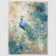 Elegant Distressed Teal Blue Florals & Peacock Tissue Paper