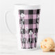 Elegant doodle black pink floral plaid pattern latte mug