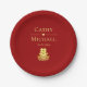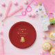 Elegant double happiness rose Chinese wedding red Paper Plate