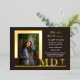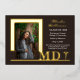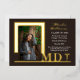 Classy and elegant one photo gold text "MD" caduceus physician graduation announcement design with real foil details by Holiday Hearts Designs (rights reserved). Placeholder template photo courtesy Unsplash.