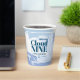 This design features bold typography with abstract artsy blue clouds. "She's on Cloud Nine" theme bridal shower paper cups with modern typography. All the products are easily editable. If you need help with the customisation or need more products from this collection please message me via Zazzle.