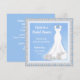 Contemporary bridal shower invitation featuring a lovely white dress on a hanger with elegant boutique gift box graphics and lace accents. Text is all formatted o both sides and ready for you to customise with your own text details. Just edit all in the easy Zazzle text editor.