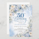 Boho Elegant Winter Dusty Blue and Ivory Flowers 50th birthday Invitation