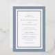 Elegant dusty blue and silver foil wedding invitation.