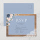 Elegant Dusty Blue Blush Floral Lace Wedding RSVP Invitation Postcard
