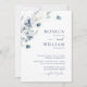 Elegant Dusty Blue Boho Winter Foliage Wedding Invitation