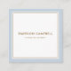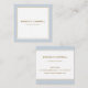 Square, white, professional business cards or personal profile cards with light dusty blue borders. Customisable name and title/company name on the front. On the back are customisable template fields for name, title/company name/speciality and contact information. A minimal and classy design
