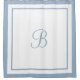 Add classic elegance to your bathroom with this stylish monogrammed shower curtain. This sophisticated white shower curtain is framed with a contemporary hotel chic layered border design. Personalise the script monogram letter with your first or last name initial. Dusty blue / chambray and white colour scheme. Please shop our store for additional colour options.