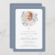 Elegant Dustyy Blue Bow Photo Boy Baptism Invitation. For best results upload a square image of the baby.
