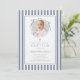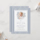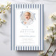 Elegant Dusty Blue Bow Photo Boy Baptism Invitation. For best results upload a square image of the baby.