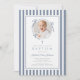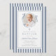 Elegant Dusty Blue Bow Photo Boy Baptism Invitation