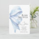 Elegant Dusty Blue Bow Watercolor Baby Shower Boy Invitation
