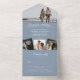 Elegant Dusty Blue Calligraphy Photo Wedding All in One Invitation