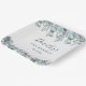 Very pretty paper plate for a birthday party. The two floral borders feature dusty blue peony and rose flowers nestled in blue eucalyptus leaves. The woman's name is written in an elegant script font. Two lines of text let you customise your birthday message.