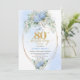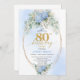 Elegant Dusty Blue Floral 80th Birthday Invitation