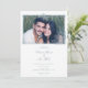This dusty blue vintage ornate frame botanical photo wedding invitation sets a refined, romantic tone for your special day, blending timeless French country elegance with heartfelt personalization. Featuring a crisp white background, a delicate dusty blue vintage ornate frame that gracefully encases your cherished couple portrait, and intricate botanical line-art accents—paired with elegant script calligraphy and understated serif typography in soft dusty blue—this design evokes nostalgic old-world charm while highlighting your unique love story.