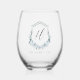 Elegant Dusty Blue Floral Crest Wedding Monogram Stemless Wine Glass
