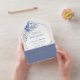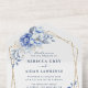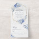 Elegant Dusty Blue Floral Gold Geometric Wedding All In One Invitation