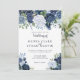 An elegant invitation featuring your wedding details surrounded by gorgeous blooms in shades of blue, white and rich navy. The card reverses to a warm dusty blue with a small bouquet in the centre. You can add your own special message and change the font style by going to the customise menu. This invitation is part of a beautiful matching wedding suite that can be fully personalised.