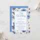 Introducing our minimalist and trendy wedding invitation, featuring a pretty flowers in light blue, with an elegant background , creating a clean and stylish look for your special day.