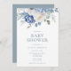 Elegant Dusty Blue Floral Winter Baby Shower Invitation