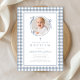 Elegant Dusty Blue Gingham Photo Girl Baptism Invitation. For best results upload a square image of the baby.