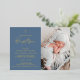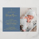 Mark your child’s sacred milestone with this custom baptism invitation featuring a baby photo. Designed with a dusty blue background, real gold foil accent cross and text, and elegant modern script, this invitation is perfect for baby boys’ christenings, dedications, or naming ceremonies.