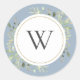 Elegant Dusty Blue Greenery Monogram Initial Classic Round Sticker