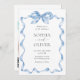 Elegant Dusty Blue Hand Drawn Bow Wedding Invitation