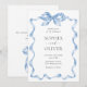Elegant Dusty Blue Hand Drawn Bow Wedding Invitation