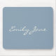 Elegant Dusty Blue Handwritten Script Name Custom Mouse Mat