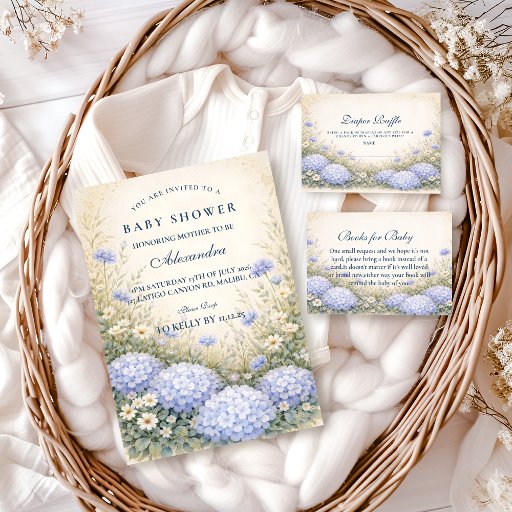 Elegant Dusty Blue Hydrangea Garden Baby ShowerDesigned by Andreea Eremia
