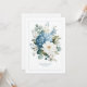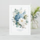 Invite your guests with breathtaking elegance using this sophisticated floral wedding invitation. The design showcases a stunning, painterly watercolor bouquet arranged beautifully against a clean white background. A magnificent dusty blue hydrangea cluster provides a lush focal point, perfectly complemented by a crisp, elegant white anemone or peony with a detailed golden-brown centre. This exquisite arrangement is artfully interwoven with smaller delicate blue flowers, sprigs of dusty blue-green eucalyptus leaves, and subtle botanical accents, creating a fresh, romantic, and sophisticated feel. A minimalist, very thin blue border provides a clean frame for your event details. Perfect for sophisticated weddings (especially with a 'something blue' theme), this design is also ideal for elegant bridal showers, milestone birthday celebrations, anniversary parties, baby showers, or upscale garden events. This versatile design can also be adapted for sophisticated corporate galas, charity fundraisers, or elegant announcements requiring a touch of refined floral beauty.