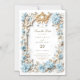 Announce your special day with this luxurious wedding invitation featuring exquisite dusty blue hydrangeas and delicate white blooms intertwined with gold baroque-inspired detailing. The ornate faux embossed frame adds a touch of sophistication, while the creamy white background creates a timeless and elegant look. Perfect for weddings with a vintage, romantic, or regal theme. Please note, the gold accents and embossed effects are printed and do not include real metallic foil or raised textures.